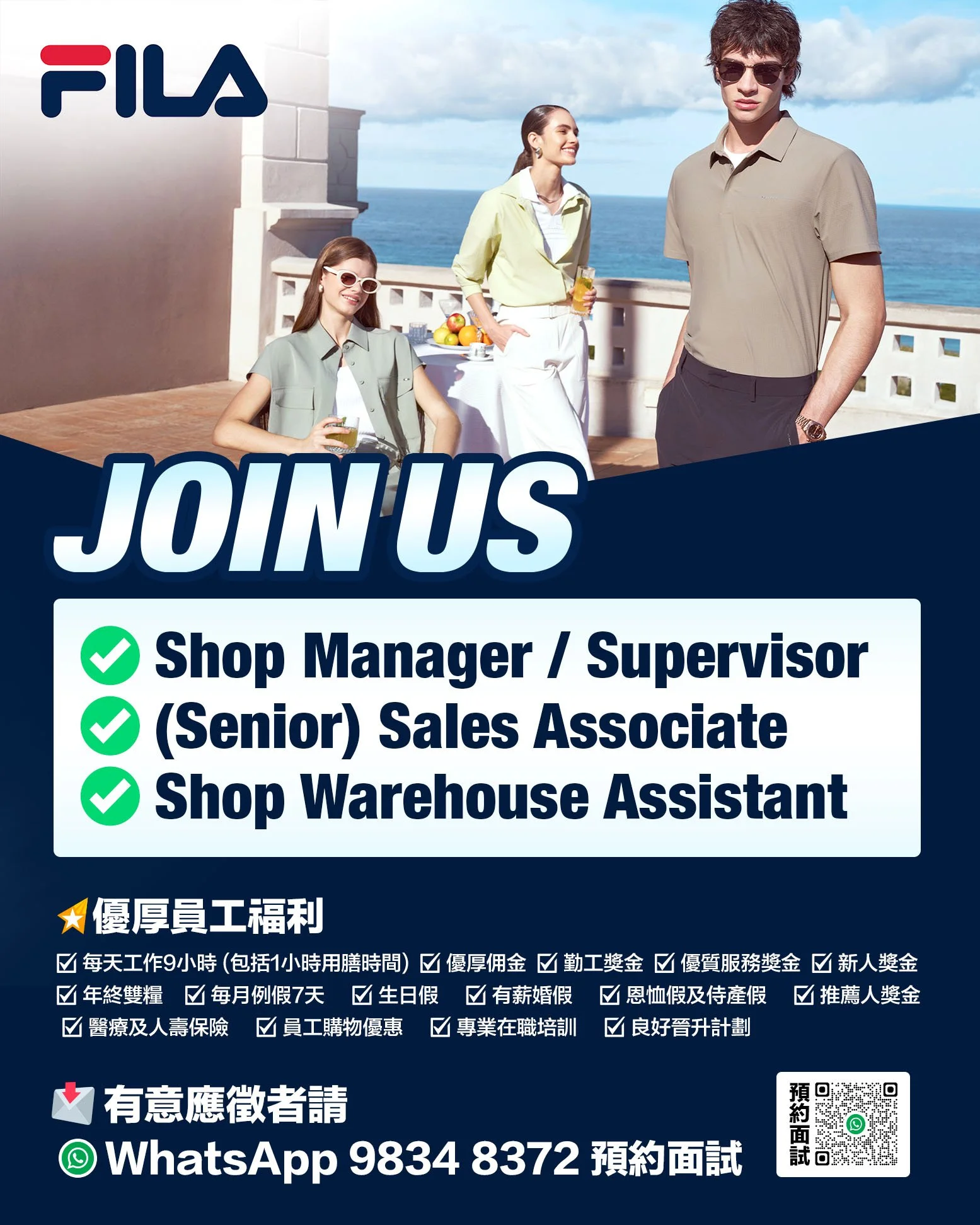 有意應徵者請 WhatsApp: 9834 8372 預約面試