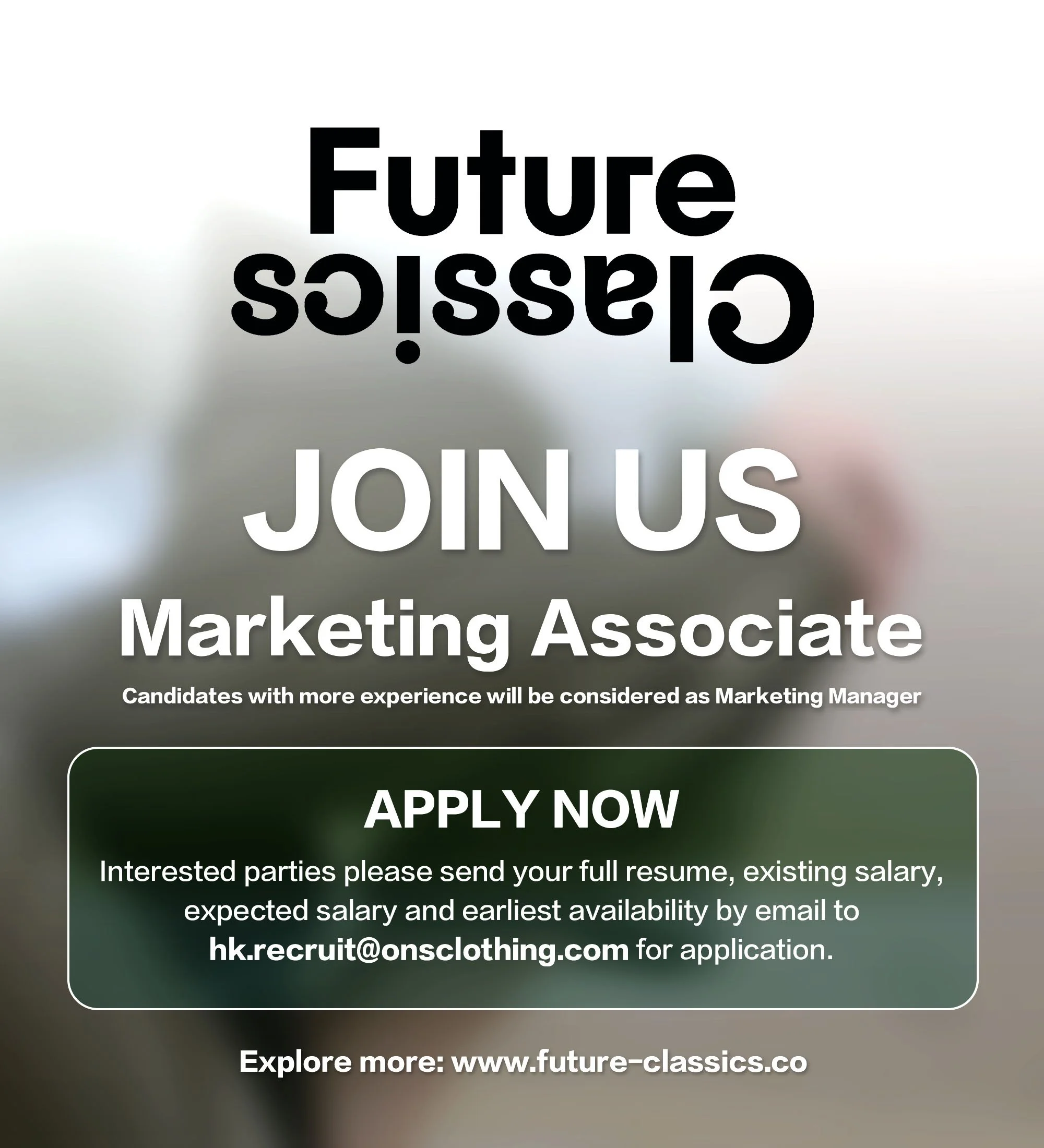 We are looking for a Marketing Associate under the brand Future Classics; an international womenswear brand for the Asian market. Future Classics operates under Hoimeng Group, the parent company of KAPOK Hong Kong, a Multi-brand retailer based in Hong Kong.