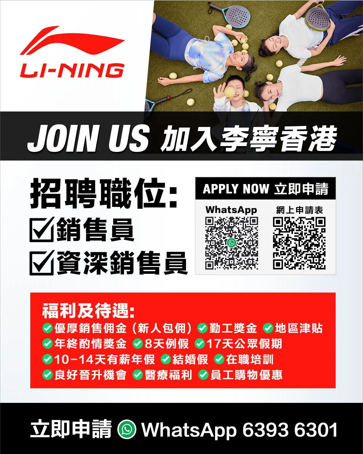 有1年或以上銷售經驗 (具備運動零售工作經驗者優先)