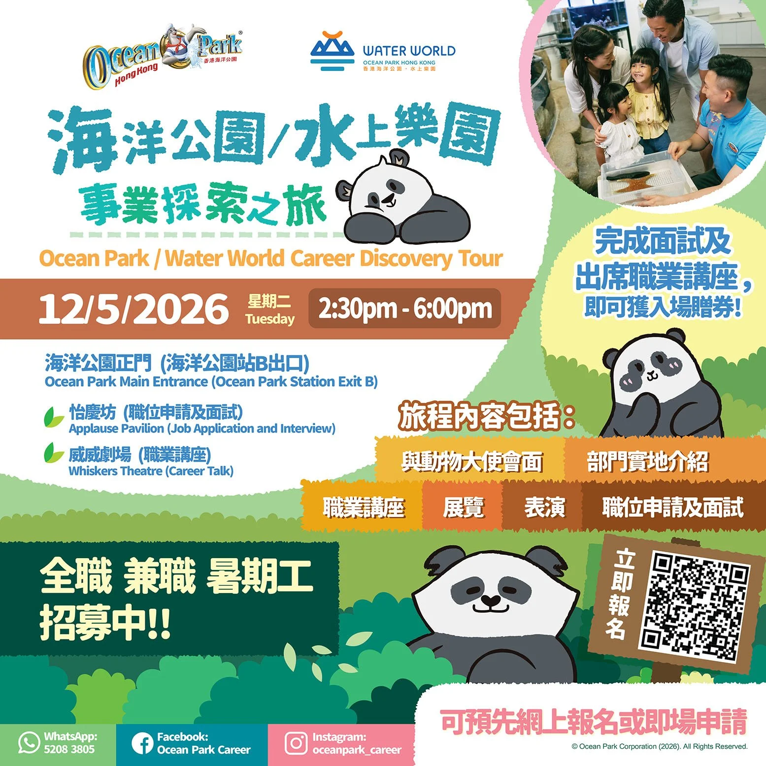2026年5月12日 海洋公園 / 水上樂園事業探索之旅 Ocean Park / Water World Career Discovery Tour on 12 May 2026